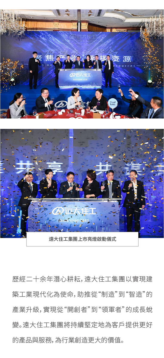 遠(yuǎn)大住工集團(tuán)今日成功在香港掛牌上市