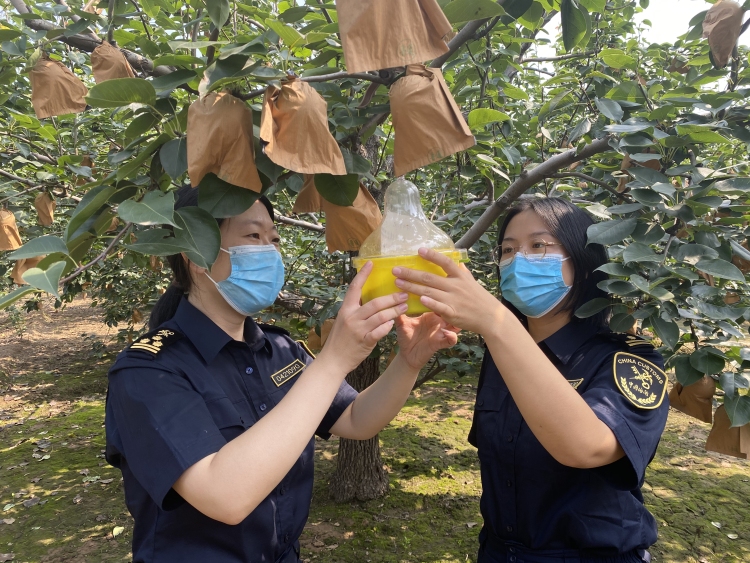 圖為石家莊海關(guān)關(guān)員對(duì)出口果園進(jìn)行注冊(cè)審核。 通訊員高鳳超攝