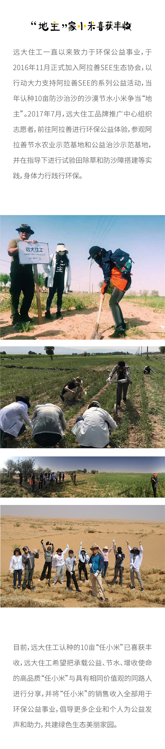 沙漠節(jié)水小米豐收啦! 綠色接力,一起公益