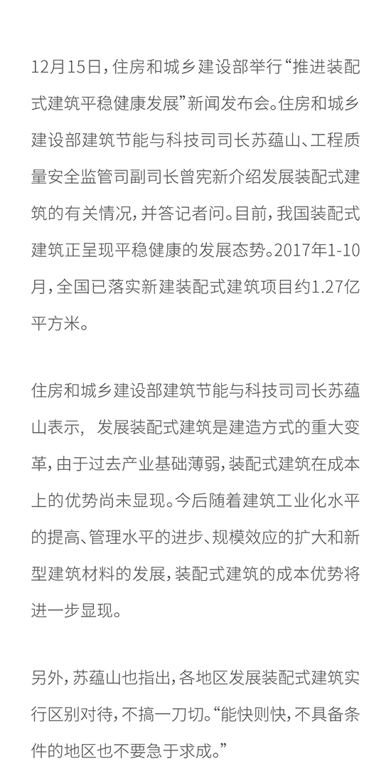 住建部:發(fā)展裝配式建筑不搞"一刀切" 成本優(yōu)勢將逐步顯現(xiàn)