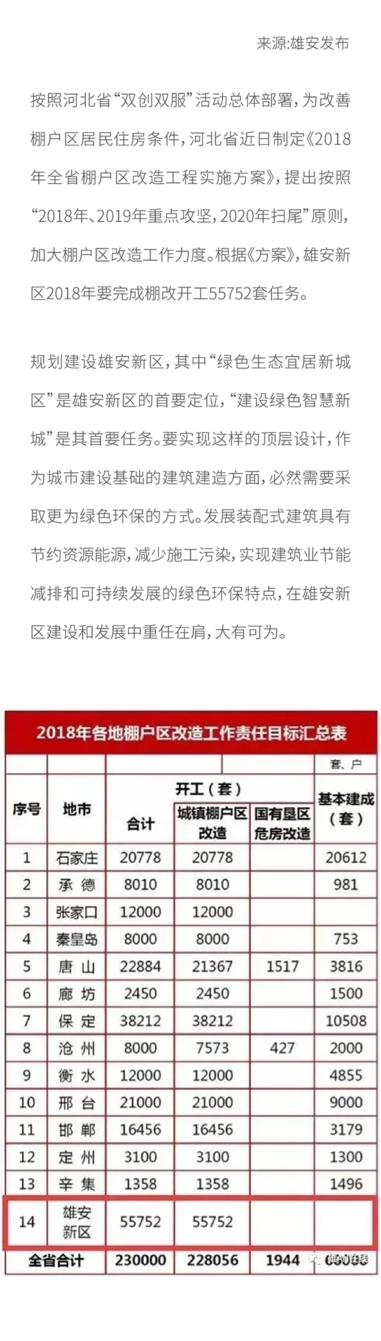 裝配式建筑大有可為!雄安新區(qū)2018年要完成棚改開(kāi)工55752套任務(wù)