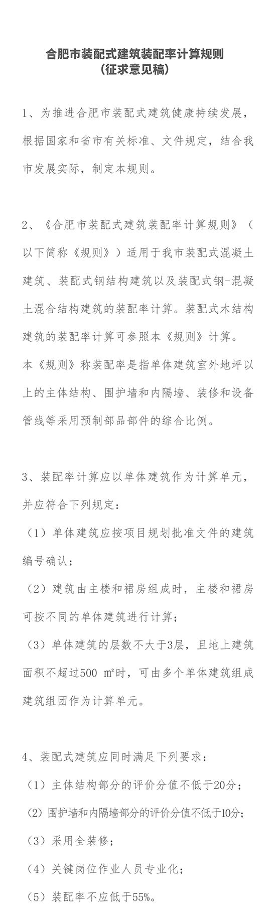 最新,《合肥市裝配式建筑裝配率計算規則(征求意見稿)》發布