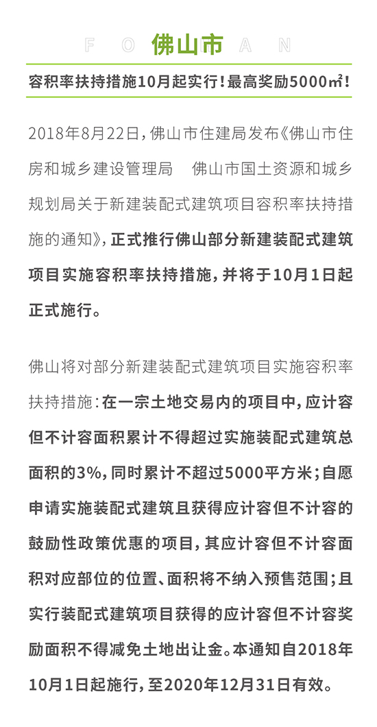 2018年上半年,多地出臺裝配式建筑計容面積鼓勵政策