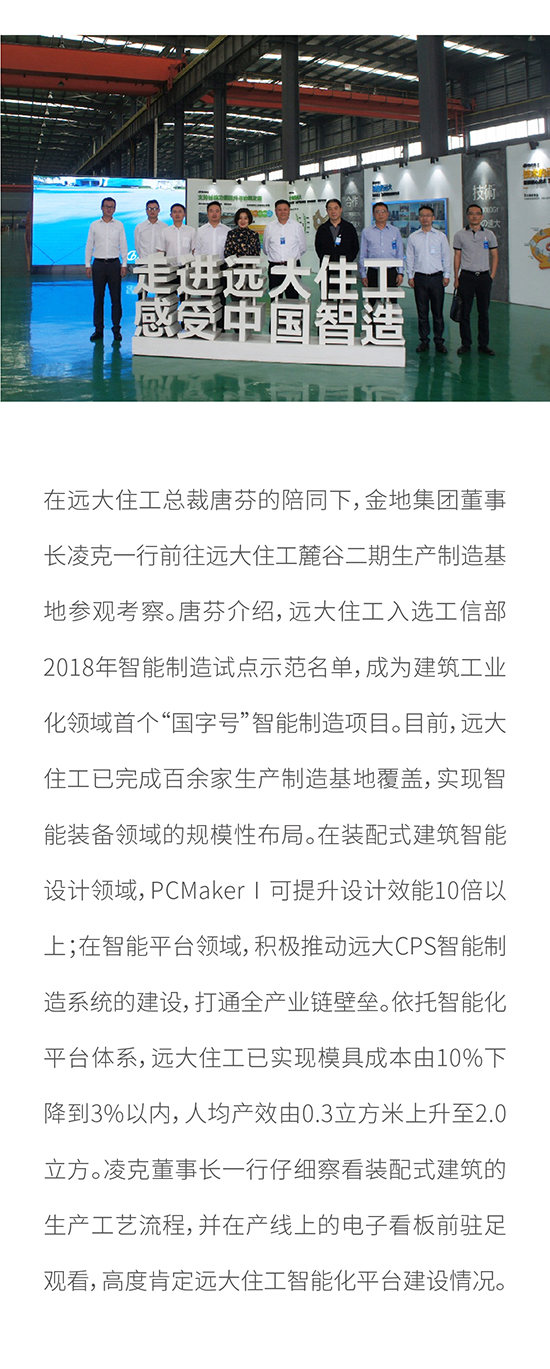 加強交流合作 促進建筑產業科技創新 金地集團董事長凌克一行赴遠大住工參觀考察
