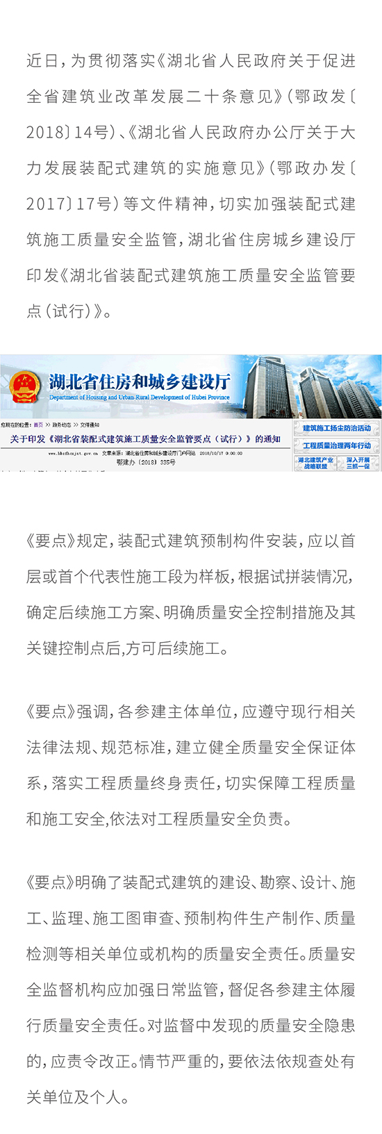 最新:《湖北省裝配式建筑施工質量安全監管要點(試行)》出臺