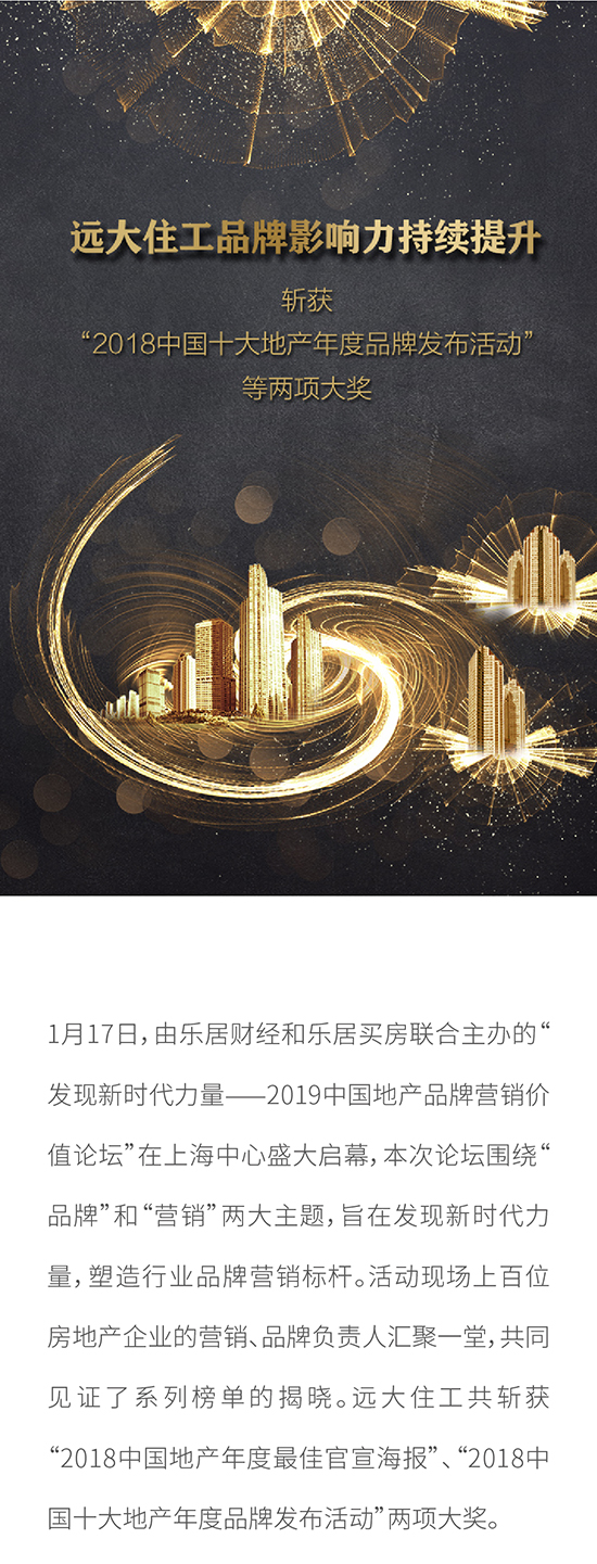 遠大住工品牌影響力持續提升 斬獲“2018中國十大地產年度品牌發布活動”等兩項大獎