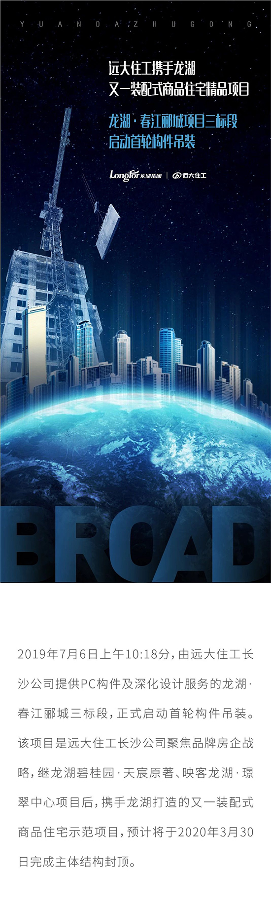 遠大住工攜手龍湖又一裝配式商品住宅精品項目 龍湖·春江酈城項目三標段啟動首輪構件吊裝